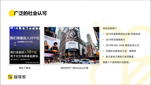 今年4月29日,由iiMedia Research(艾媒咨询)主办的“2021中国金指尖奖”颁奖典礼在线上举行。得益于在商品推荐、社群运营、品控售后服务、创新功能体验、用户满意度等多方面的深厚积累,鲸灵集团蜂享家一举斩获此次2021中国金指尖奖——“最佳产品体验网上购物平台”,彰显出在市场与口碑方面的超强实力。
